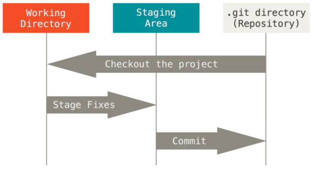 Git 项目拥有三个阶段:工作区、暂存区以及 Git 目录 来对应上面的三种状态。