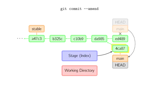 一旦此后你切换到别的分支,比如说main,那么这个提交节点(可能)再也不会被引用到,然后就会被丢弃掉了。注意这个命令之后就不会有东西引用2eecb。