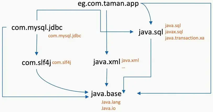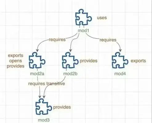 JDK 从Java 9开始 在包之上引入了一个新的抽象级别,正式名称为 Java 平台模块系统 (JPMS),简称“模块”。Java 模块是一种打包机制,使您能够将 Java 应用程序或 Java API 打包为单独的 Java 模块。Java 模块被打包为模块化 JAR 文件。Java 模块可以指定它包含哪些 Java 包,这些包应该对使用此模块的其他 Java 模块可见。Java 模块还必须指定完成其工作所需的其他 Java 模块。