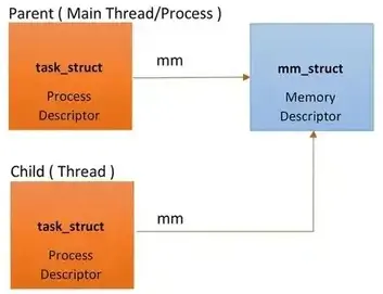 如果task_struct 有自己的 mm_struct,称为 Process,其实本身就是个 Main Thread (CPU scheduling的基本单位)。如果task_struct 共用别人的 mm_struct,称为 Thread。