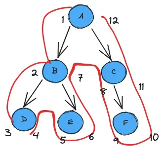 • 遍历结束回到根节点右侧。